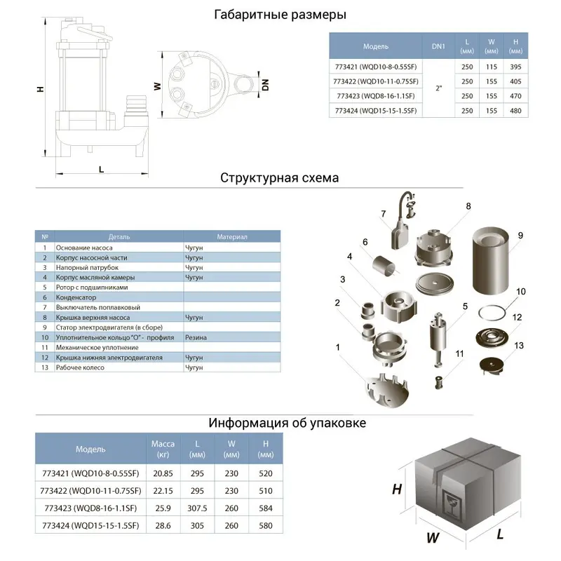 - Поплавковий вимикач забезпечує автоматичне включення і виключення насосів даної серії в залежності від рівня води