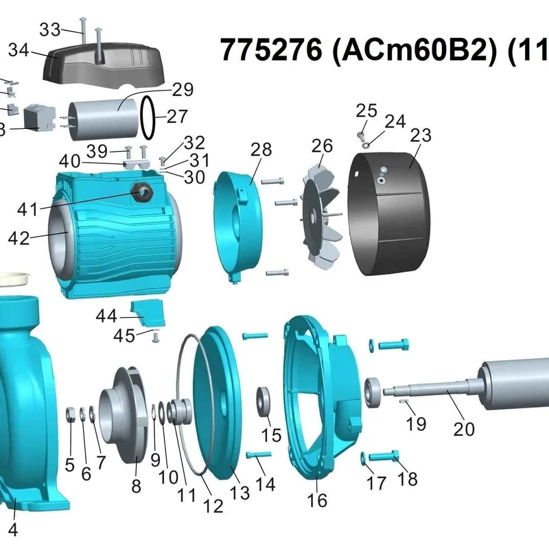 • Вал двигуна: нержавіюча сталь AISI 304.