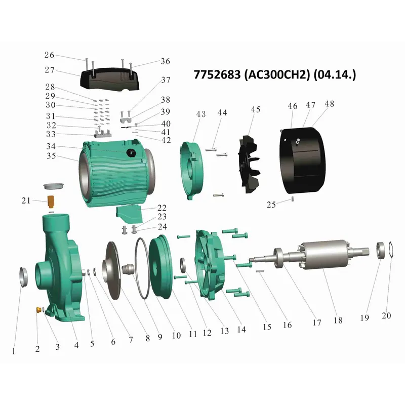 - Робоче колесо: нержавіюча сталь AISI 304;