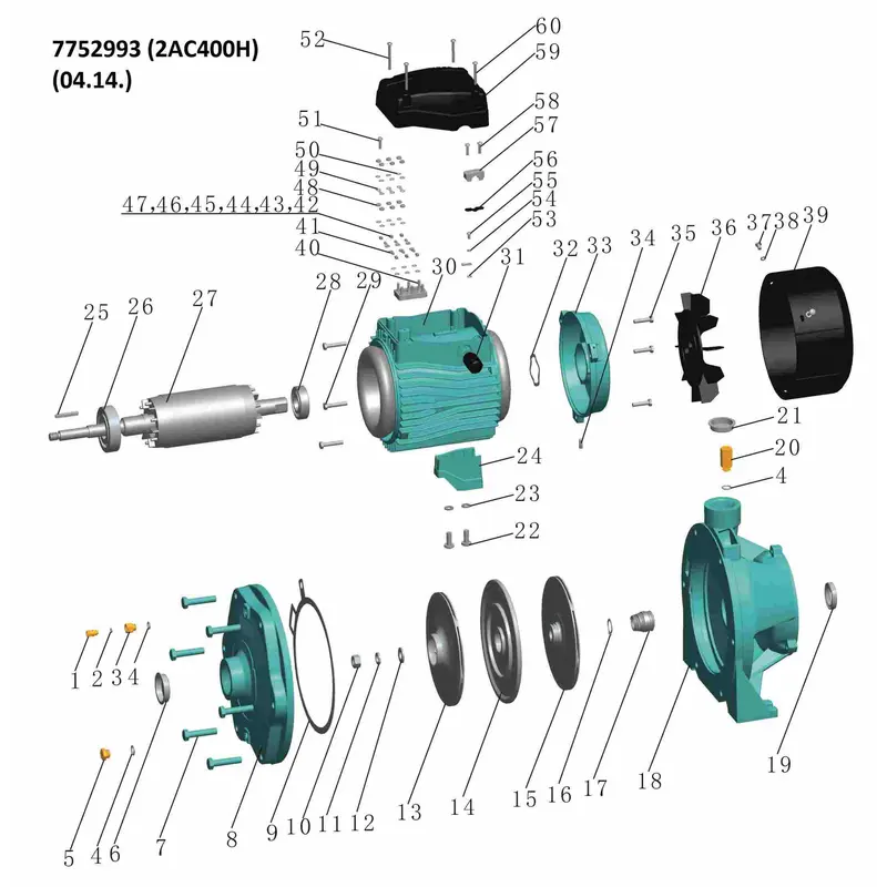 - Тип двигуна: асинхронний, закритого типу, повітряного охолодження, з вбудованим в обмотку термозахистом