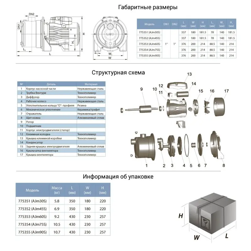 - Робоче колесо: нержавіюча сталь AISI 304;