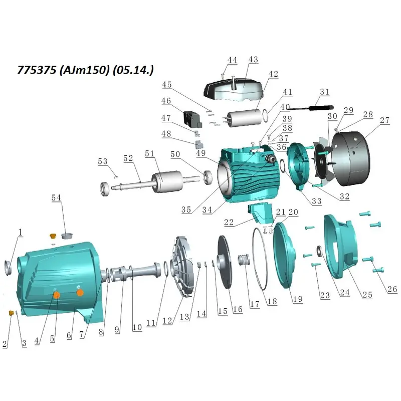 - Робоче колесо: нержавіюча сталь AISI 304
