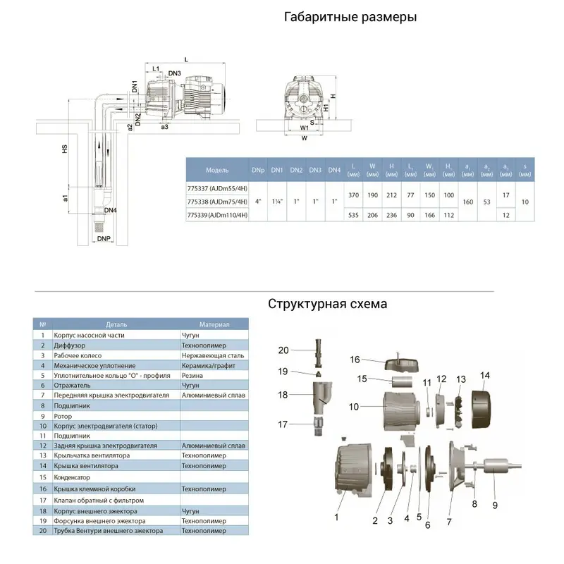 Насос відцентровий з зовнішнім ежектором 0.75кВт HSmax 35м Hmax 50м Qmax 30л/хв (зовн ежектор Ø96мм) LEO 3.0 AJDm75/4H (775338)