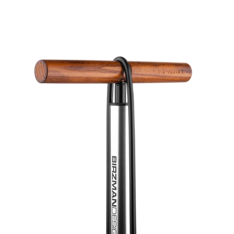 Ручка насоса выполнена в классическом стиле, а материалом для нее служит покрытое лаком дерево. Стойка и цилиндр выполнены из легкого и прочного алюминия, обработанного на станках CNC. Благодаря такой обработке изделие не имеет сварных швов, так как выполнено из цельной заготовки. Такой подход также снижает итоговый вес конструкции.