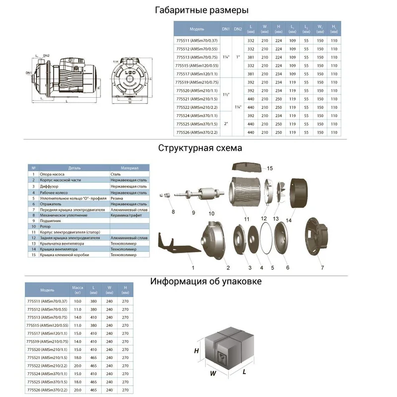 Насос відцентровий 0.75кВт Hmax 16.8м Qmax 300л/хв (нерж) LEO 3.0 (775519)