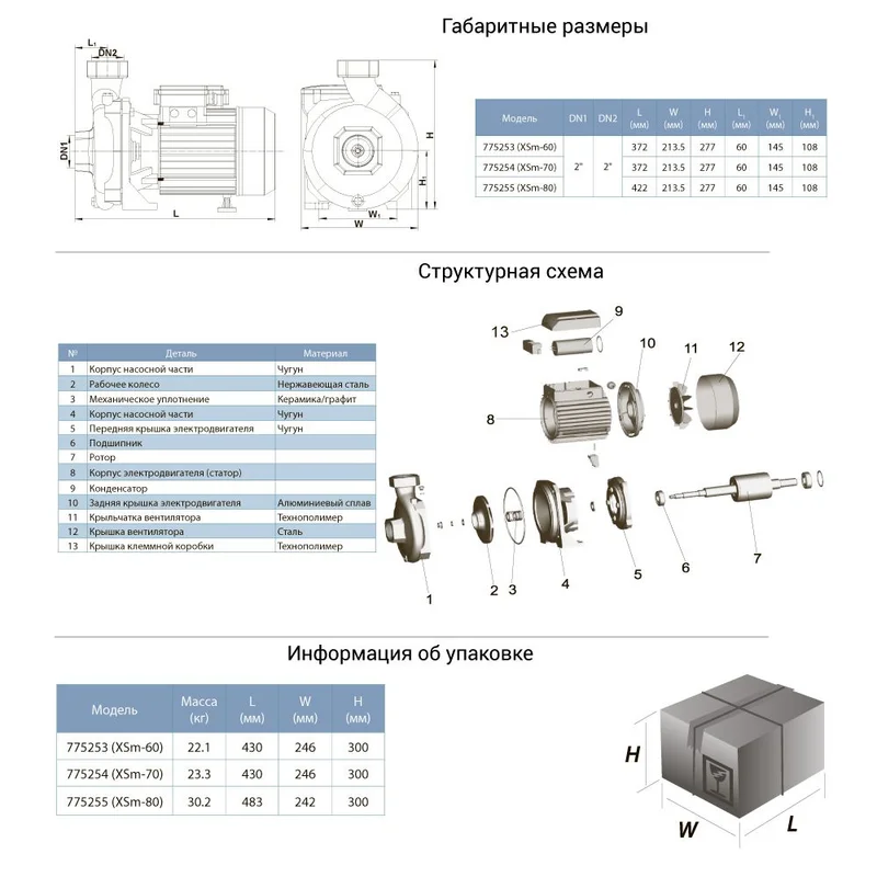 Насос відцентровий 1.1кВт Hmax 25м Qmax 440л/хв LEO XSm-60 (775253)