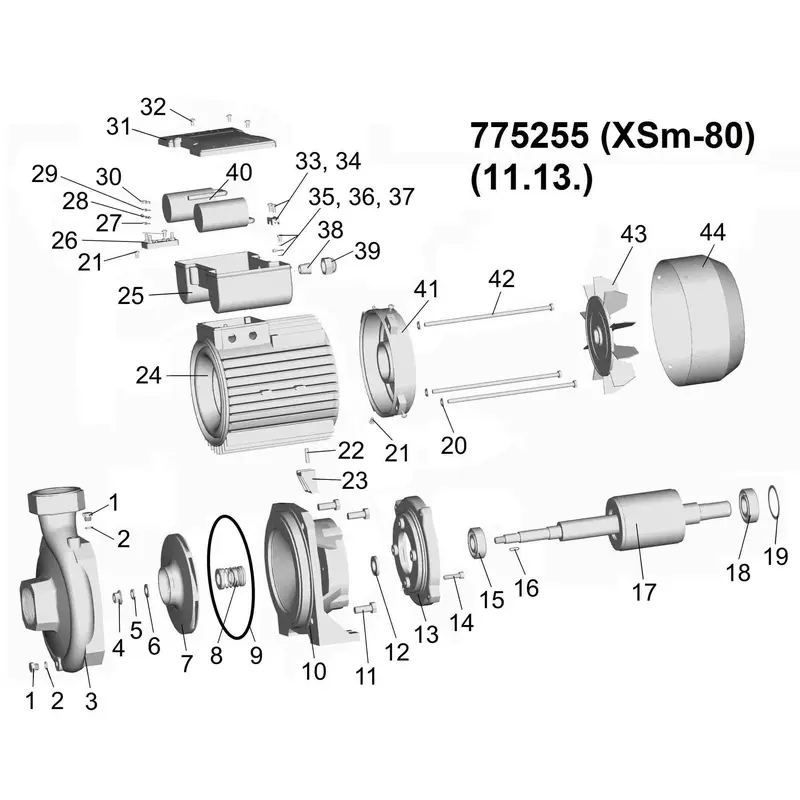 Насос відцентровий 2.2кВт Hmax 34м Qmax 500л/хв LEO XSm-80 (775255)