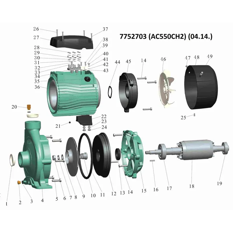 - Робоче колесо: нержавіюча сталь AISI 304;