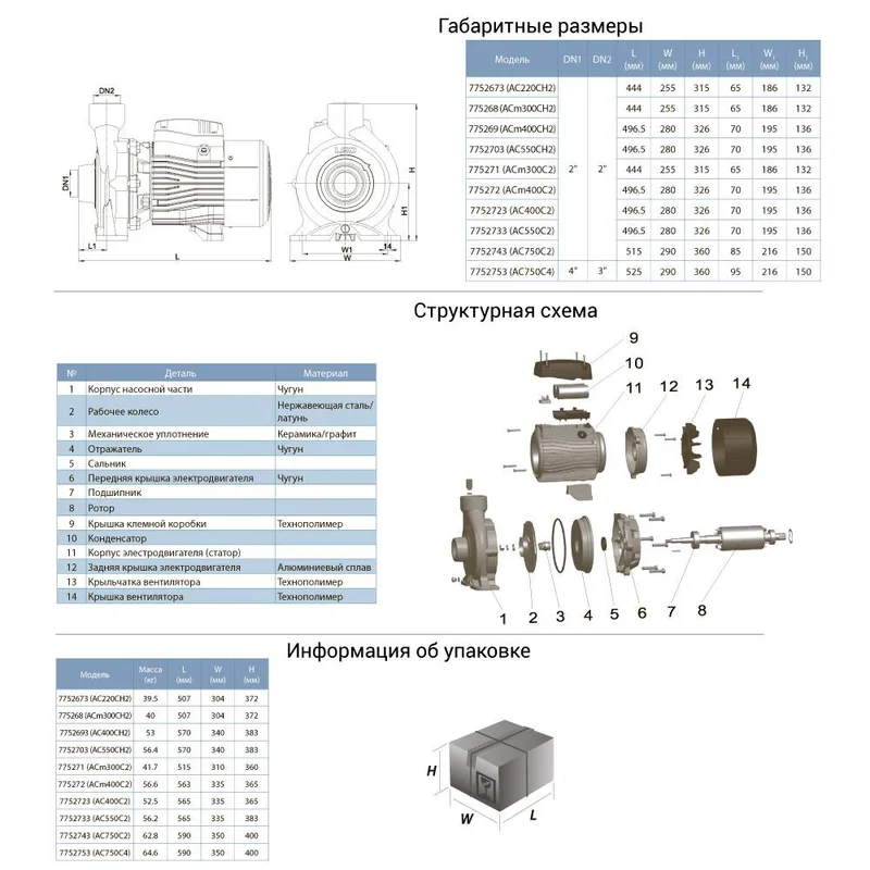 Насос відцентровий 380В 7.5кВт Hmax 56.5м Qmax 900л/хв 2" LEO 3.0 AC750C2 (7752743)