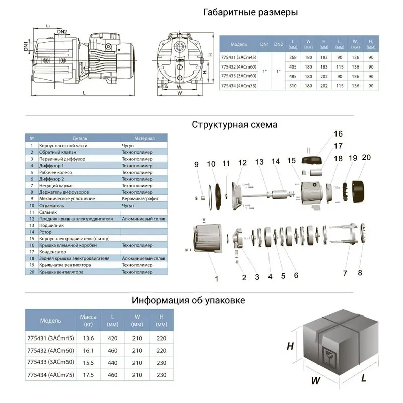 - Робоче колесо: технополімер;