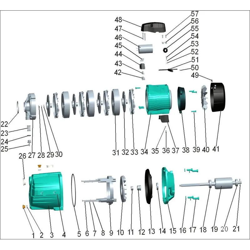 - Вал двигуна: нержавіюча сталь AISI 304.
