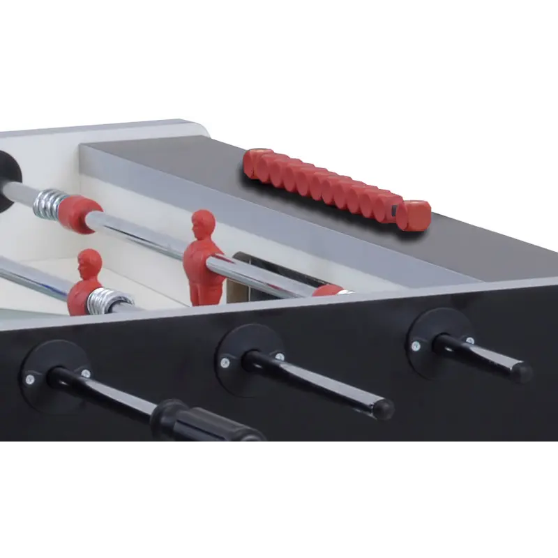 - Ігрове поле із ламіната на основі ДСП з наклоном по периметру для запобігання виникненню "мертвих зон". Білі лінії на зеленому тлі, нанесені методом шовкографії, відтворюють футбольне поле.