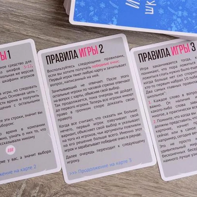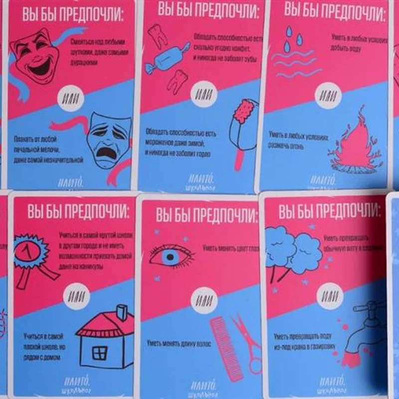Компактна гра з дуже простими правилами, яка змусить усіх від двієчника до відмінника замислитися над тим, що б вони вибрали: вміти проходити крізь стіни чи вміти пересувати предмети на відстані? Гра містить 60 карток, кожна з яких ставить гравців перед дуже непростим вибором. Ця захоплююча гра навчить школярів мислити критично, наводити аргументовані докази на підтримку своєї думки, міркувати, сперечатися і, звичайно ж, дозволить гравцям дізнатися багато нового про своїх друзів та однокласників!
