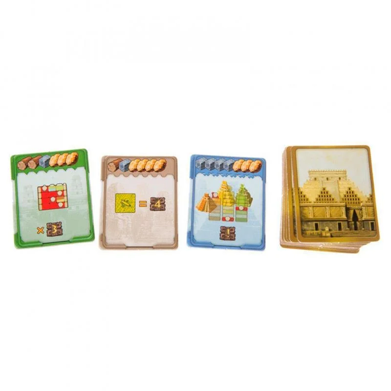 Цолькін: Календар Майя - досягнення древніх Майя Майя - стародавня цивілізація Мезоамерики, відома своєю писемністю, архітектурою і мистецтвом, а також математичної і астрономічної системам. Жителі племені будували кам’яні міста, більшість з яких вони покинули перш, ніж прийшли європейці. Майя застосовували ієрогліфічну систему письма, частина якої збереглася, в основному це написи на пам’ятниках. Крім того, дана цивілізація запам’яталася створенням ефективної системи землеробства. Саме значуще і прославлене винахід Майя - календар Цолькін, яким користувалося не тільки плем’я, а й інші народи Центральної Америки. Сьогодні, завдяки настільній грі Цолькін: Календар Майя (Tzolk’in: The Mayan Calendar), у вас з’явиться шанс повернутися в 2000-й рік до нашої ери і стати вождем племені, щоб розвивати науку, оберігати народ і писати історію давньої цивілізації своєю рукою. День за днем… Ігрове поле - неймовірна комбінація з різних деталей, зібравши яку, ви отримаєте крутейший календар, шестерінки якого рухаються! Перед початком гри фішки і жетони відправте в банк, поля і джунглі засейте відповідними тайлами, монументи і будівлі першої епохи розкладіть в потрібних розподілах, а календар зупиніть на позначці «день їжі». Учасникам належить стати лідерами одного з племені древньої цивілізації Майя і привести його до процвітання. Вони отримують на руки по набору компонентів обраного племені, а саме: поле, 4 тайла багатства, 3 робочих і 8 маркерів, за допомогою яких можна буде відзначати своє поточне становище на треках храмів, технологій і переможних очок. В першу фазу раунду гравці можуть або відправляти своїх робочих на шестерінки календаря, або забирати їх звідти. Розміщувати робочого потрібно завжди на перше вільне розподіл, а після - заплатити в банк кількість зерна, що дорівнює номеру комірки. Розміщення кожного наступного робочого також буде оплачуватися по «прайс-листу» вашого поля. Якщо гравець починає хід всього з двома фішками зерна в запасі, то замість дій з робітниками, він може витратити хід на вимолювань зерна у богів. Якщо у вас не залишилося вільних робочих, ви можете забрати їх і натомість виконати дію. Так, дія, вказане на вашому розподілі, можна виконати безкоштовно, в той час, як за кожне попереднє доведеться віддати зерно. Забирати робочих можна і просто так, але тоді учасник не отримає ніякої вигоди, адже саме виконуючи дії, можна заробляти ресурси і переможні очки, освоювати технології, будувати пам’ятники й розраховувати на милість богів. Коли всі гравці виконали хід, календар повертається на один день проти годинниковою стрілкою, а все шестерінки і знаходяться на них робочі рухаються вперед. Чотири рази за гру Цолькін: Календар Майя в племені проводяться особливі дні - дні їжі, вони відзначені спеціальною позначкою на зубчики шестерінки. У день їжі гравці по закінченню ходу годують своїх робочих, заплативши за їх харчування по 3 зерна, якщо ж хтось залишиться голодним, доведеться повернутися на 3 кроки назад по треку переможних очок. Гра Цолькін: Календар Майя - наведіть шестерінки Коли шестерня Цолькін зробить повне коло і повернеться на стартову позицію, партія завершиться. Тоді учасникам залишиться перевести зароблені за гру ресурси в переможні очки, додати до них позицію на треку переможних очок і визначити кращого лі