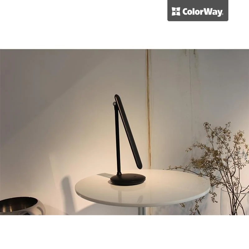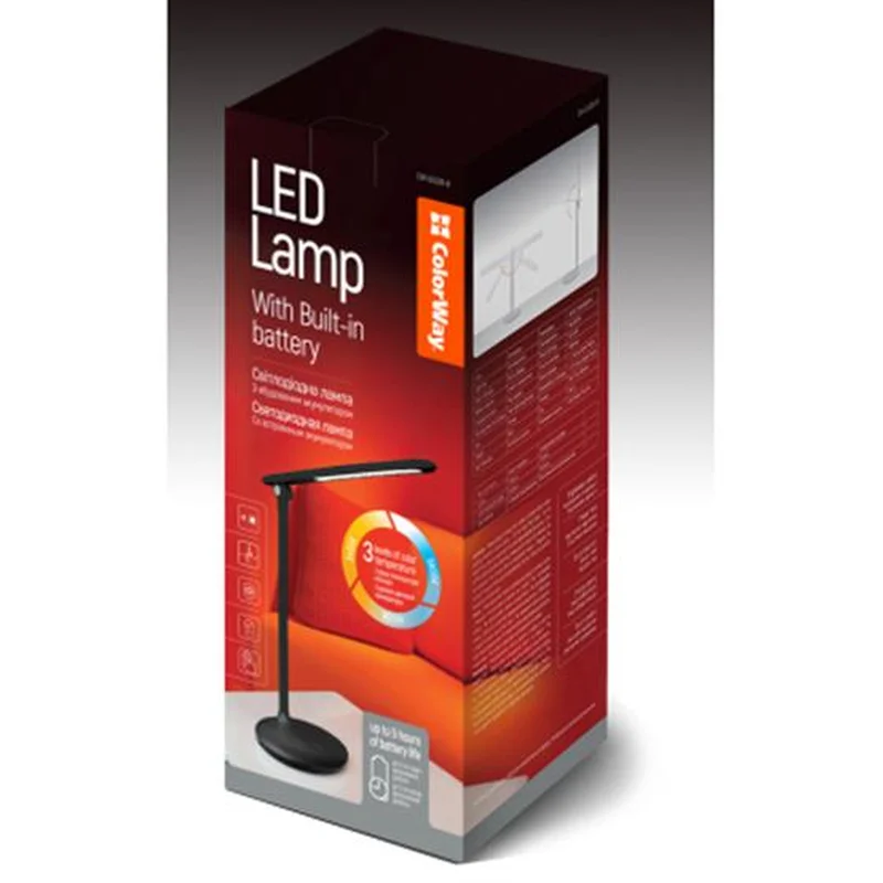 Настільна світлодіодна лампа ColorWay з вбудованим акумулятором. Стильний дизайн і функціональні можливості роблять лампу ColorWay не тільки елегантним елементом інтер’єру, але і незамінним аксесуаром, що допомагає підвищити продуктивність і ефективність роботи. LED лампа має вбудований акумулятор об’ємом 1800 mAh, який забезпечує до 4-х годин роботи без підключення до мережі, зарядити її можна від будь-якого джерела, оснащеного роз’ємом USB! Для підключення Вам не будуть потрібні додаткові спеціальні пристрої для зарядки, підійдуть роз’єми в комп’ютері, ноутбуці, зарядний пристрій для смартфона або PowerBank, це також просто, як зарядити телефон, що робить лампу по справжньому мобільною! Сенсорна кнопка на корпусі забезпечать безшумне і м’яке управління девайсом. Для забезпечення комфортної роботи передбачена можливість управління яскравістю і колірною температурою освітлення. Залежно від потреби, користувач може встановити: підвищуюче концентрацію холодне ранкове світло, оптимальне для читання і навчання нейтральне денне світло або заспокійлиююче та знімаюче стрес тепле жовте світло. Світлові елементи забезпечують рівномірне розсіювання світла.
