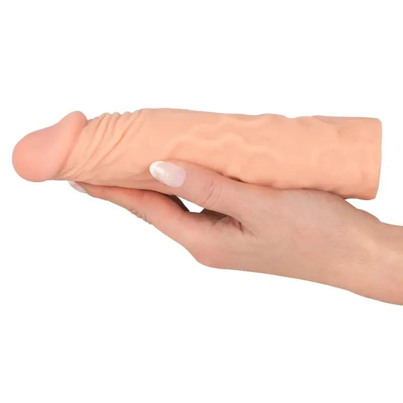 Цей інтимний аксесуар виготовлений з надзвичайно м'якого і ніжного термопластичного еластомеру, що добре тягнеться. Зовні насадка має рельєф, який створює імітація вен під шкірою та опукла голівка, а всередині рукав гладкий, щоб його можна було легко надіти. У процесі Ваша половинка отримуватиме максимально реалістичні відчуття та неймовірне задоволення. Насадка & Nature Skin Extension Sleeve – це відмінний спосіб додати різноманітності інтимним відносинам!