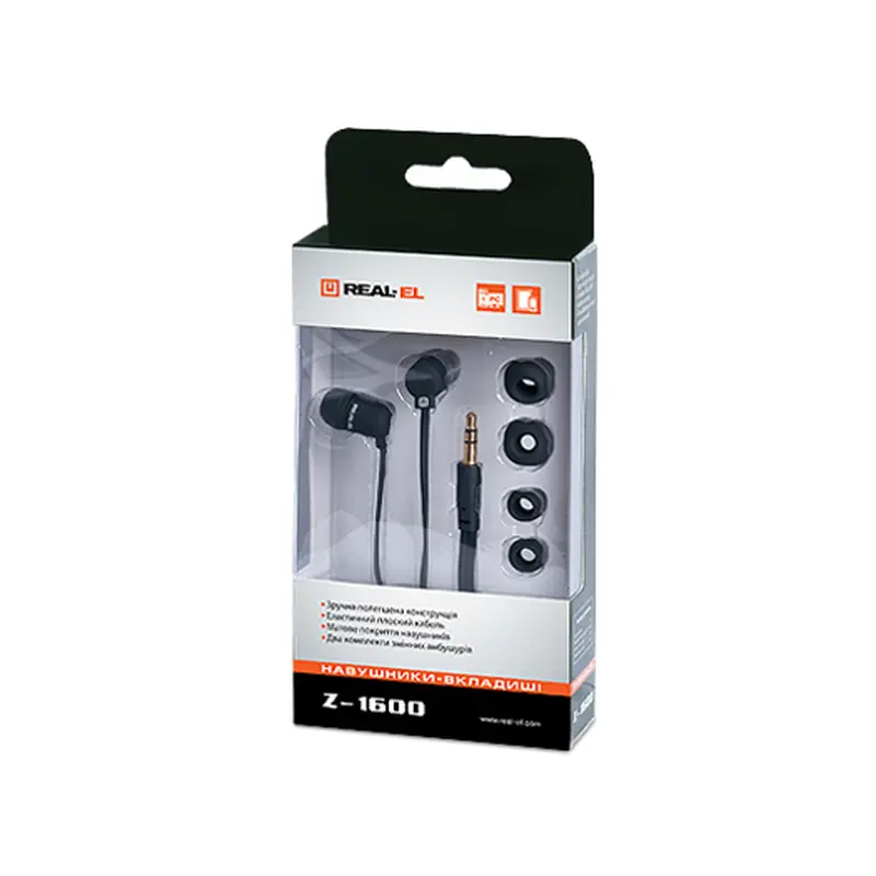 Навушники REAL-EL Z-1600 - це зручні навушники-вкладиші зі збалансованим якісним звучанням в металевому корпусі. Навушники призначені для роботи зі звуковими картами ПК та іншими сумісними з ними системами (портативними програвачами, комп"ютерними ігровими приставками і т. п). Завдяки оптимальному співвідношенню технічних характеристик і якісних матеріалів, які використовувалися при створенні даної моделі, ці навушники відмінно підійдуть для всього спектру мобільних пристроїв, оснащених портом 3,5 мм. Спеціальний плоский кабель, що не сплутується, робить їх дуже зручними в повсякденному використанні, а також забезпечує тривалий термін служби.