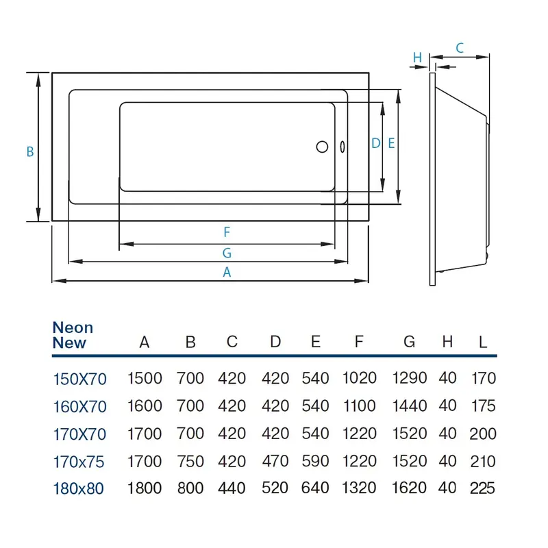 NEON Ванна акрилова 160*70 без ніжок (KP)