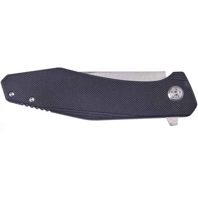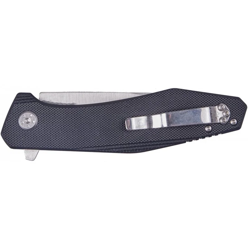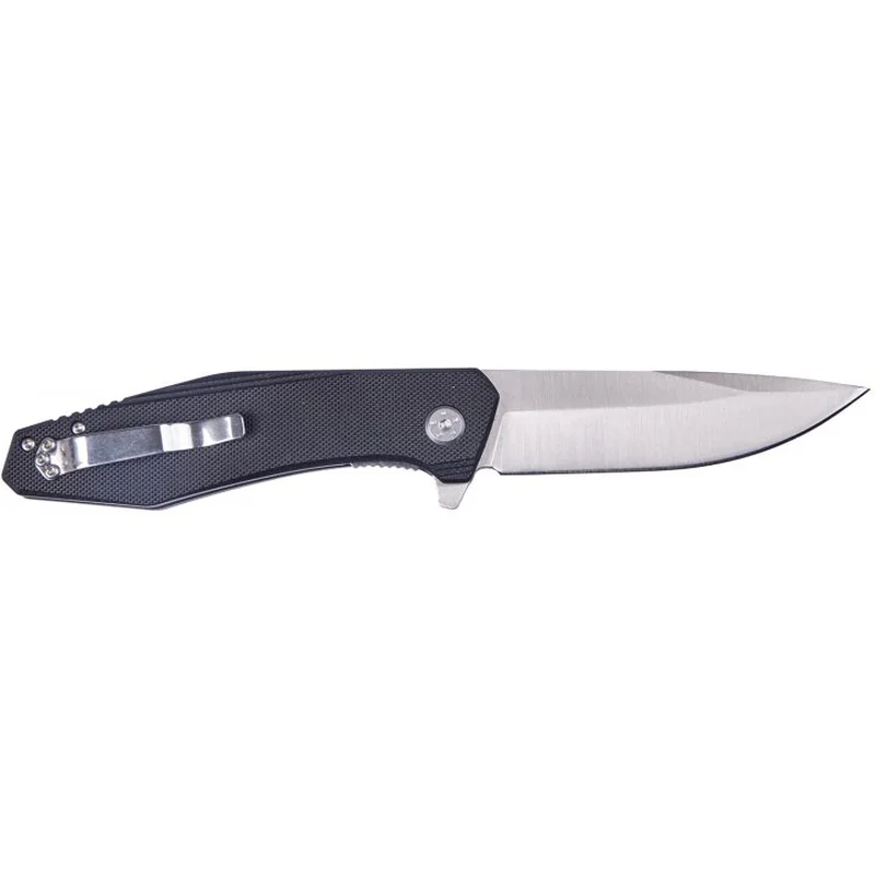 Клинок профілю Clip Point виконаний із недорогої сталі марки 3Cr13, яка відрізняється хорошими показниками корозійної стійкості, а також простотою виправлення різальної кромки. Витягується клинок за допомогою фліпера і надійно фіксується у робочому положенні сталевою пластиною замка Liner Lock. Ніж обладнаний системою шарикопідшипників, що сприяє легкому та плавному витягуванню клинка. Прямі спуски починаються майже з 1/3 від обуха, що у поєднанні з формою клинка забезпечує ножу хороші колючі та різальні якості.