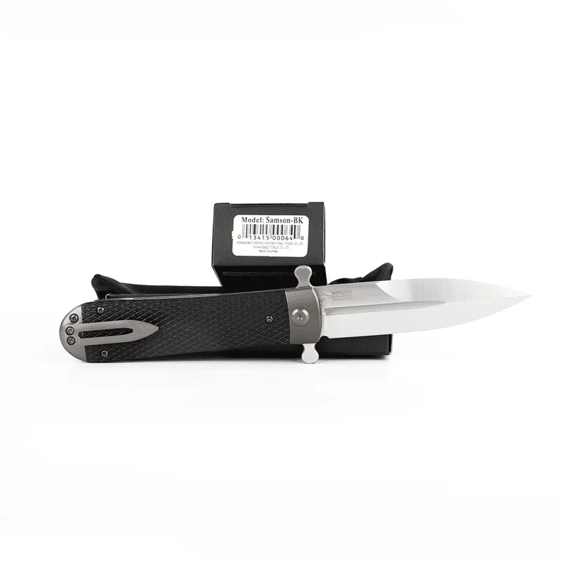 Модель Adimanti Samson-унікальний інструмент з рідкісною формою клинка Spear-Point, яка виділяється агресивно гострим кінчиком і фальшлезвием у верхній частині. Це складна модель, яка орієнтована на любителів практичних ножів з оригінальним дизайном і має розширені можливості з упором на силову роботу.
