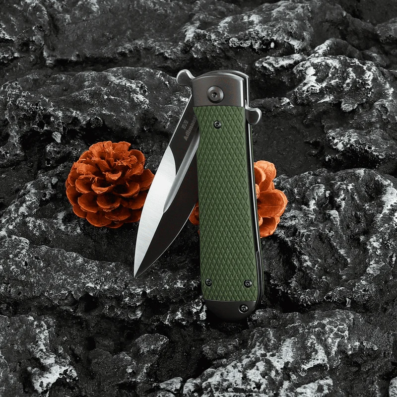 Ніж Adimanti by Ganzo Samson - це компактний фліппер, чий клинок надійно замикається у відкритому і закритому положеннях. Рукоять інструменту має сталеву основу з двома текстурованими накладками з G10-міцного склотекстоліту, який високо цінується за свою стійкість до ударів і механічних пошкоджень. На відміну від дешевого пластику, на склотекстоліті не утворюються мікротріщини після тривалого впливу низьких температур. Матеріал також не деформується в разі довгого перебування під прямими променями сонця, не вицвітає і не ковзає в долоні.