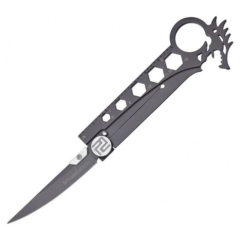 Складаний ніж Artisan Dragon - це унікальний, багатофункціональний ніж, який крім своїх основних функцій може використовуватися в якості лінійки або болтового ключа. Дизайн ножа виконаний досить нестандартно і не має аналогів.