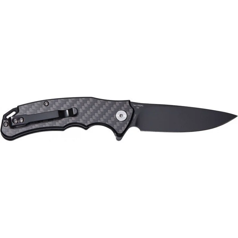 Рукоять ножа виготовлена з вуглецевого волокна, що робить модель легкою і забезпечує високу міцність виробу.