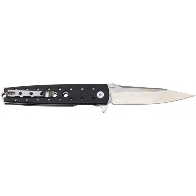 Клинок форми drop point забезпечує широкий спектр використання, а високоміцна сталь D2 тримає заточку тривалий час. Метод обробки клинка Satinpolish. Наявність фліппера сприяє швидкому витяганню клинка однією рукою.