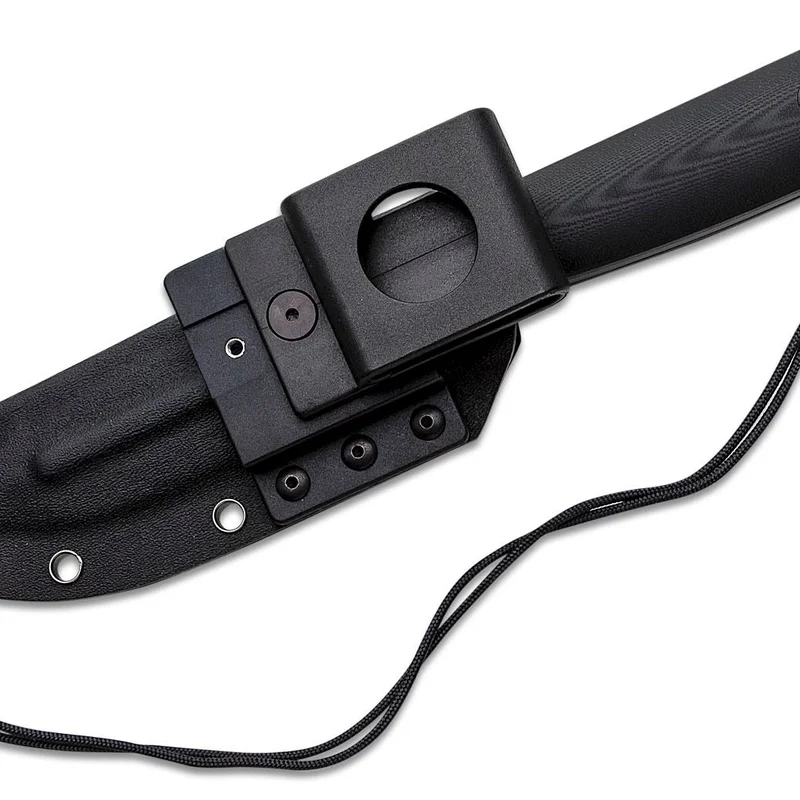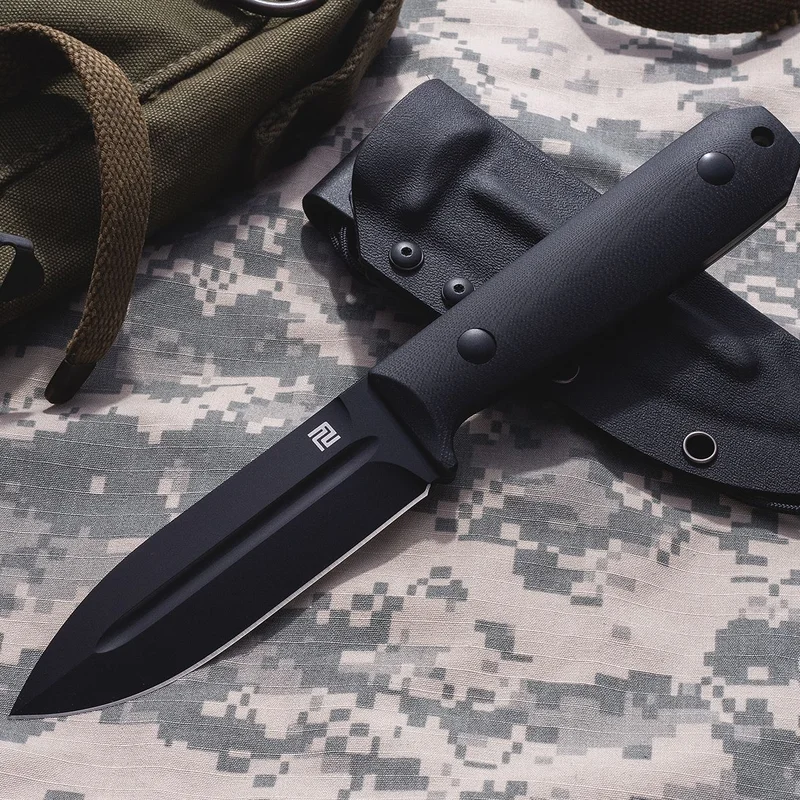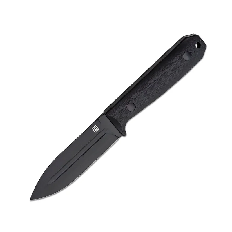 Для виготовлення клинка форми Spear point була використана фірмова порошкова сталь компанії - AR-RPM9 (Artisan-Rare Powdered Material 9 Element Steel). Ексклюзивна сталь має однорідну структуру, яка дозволяє зберігати гостру різальну кромку протягом тривалого періоду, проста в правці і відмінно витримує навантаження. Чорне PVD (Physical Vapor Deposition) покриття захищає сталь клинка від вологи, агресивних хімічних речовин, корозії та подряпин. Накладки на руків'ї виконані з чорного G10 та надійно кріпляться до конструкції ножа за допомогою масивних гвинтів. На торці ножа розміщений отвір для темляка. У комплекті йдуть міцні пластикові піхви з кріпленням на ремінь та шнурком для кріплення на спорядження.
