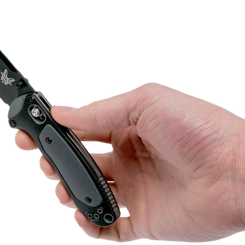 Рукоять ножа має ергономічну форму і прекрасно лежить в руці під час роботи, будь то щоденна рутина по розкриванню конвертів і упаковок, або стругання кілочок під час заміського пікніка. Виконана рукоять із сталевих лайнерів, захованих в плашках з полімерів Grivory & Versaflex. Комбінація цих матеріалів, завдяки їх текстурі, забезпечує надійний хват ножу при виконанні самих різних робіт. Для відкривання клинка використовується двосторонній шпенек, сам же клинок підпружинений асистом, захованому в осьовому вузлі ножа.