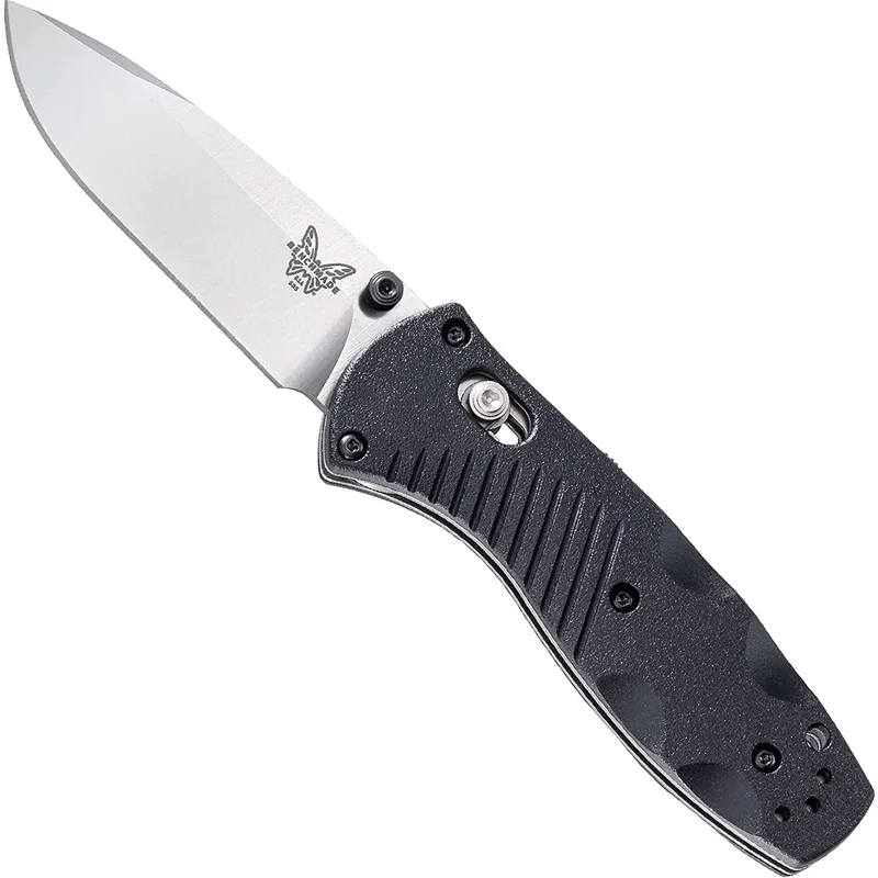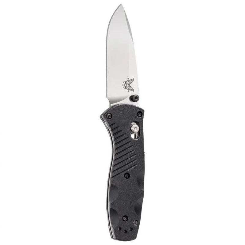 Молодший брат 580-го. Родзинкою Benchmade 585 Barrage є замок з напівавтоматичним відкриттям AXIS® Assist, який дозволяє миттєво відкрити ніж в разі необхідності. Поліроване лезо з нержавіючої сталі 154CM довжиною 7,4 см у формі Drop-Point забезпечує чудовий рез і довго тримає заточку. Рукоять виконана з Valox® з поглибленнями під пальці для прямого і зворотного Хватів. Доповнюють ніж лайнер з 420J2 сталі і двосторонній шпенек.