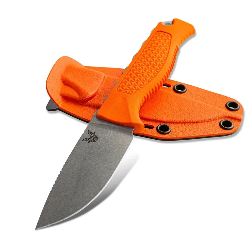 Фіксед від Benchmade-це новий погляд на ножі для полювання. Тільки сучасні матеріали для довгого безпечного використання. Особливістю даної моделі є рукоять з теплого прогумованого матеріалу Santoprene, який не ковзає і забезпечує впевнений хват. Це дозволяє працювати мокрими, брудними руками, не побоюючись за якість різу, которе страждає при недостатньо міцному безпечному хваті. Дана модель легше багатьох складників: її вага становить всього 85 грам при загальній довжині 192 мм.При цьому, на відміну від складних мисливських ножів, яким притаманні таки недоліки, як засмічуваність замку, трохи менша надійність через наявність механізмів, дана модель являє собою впевнену утилітарну класику, але в сучасному дизайні. Прекрасна сталь з відмінною здатністю тримати кромку і не іржавіти, компактні розміри - ось те, що вигідно відрізняє Steep Country Hunter від інших мисливських моделей. Спеціальні насічки на обуху дозволяють тиснути на ніж зверху – завдяки ребристій поверхні пальці не зісковзнуть при сильному тиску. Цей ніж практичний і надійний – сатинове покриття Satin finish захищає клинок від забруднень і приховує дрібні пошкодження, а рукоять виготовлена з міцного термопластика, несприйнятливого до змін температур і хімічних впливів.