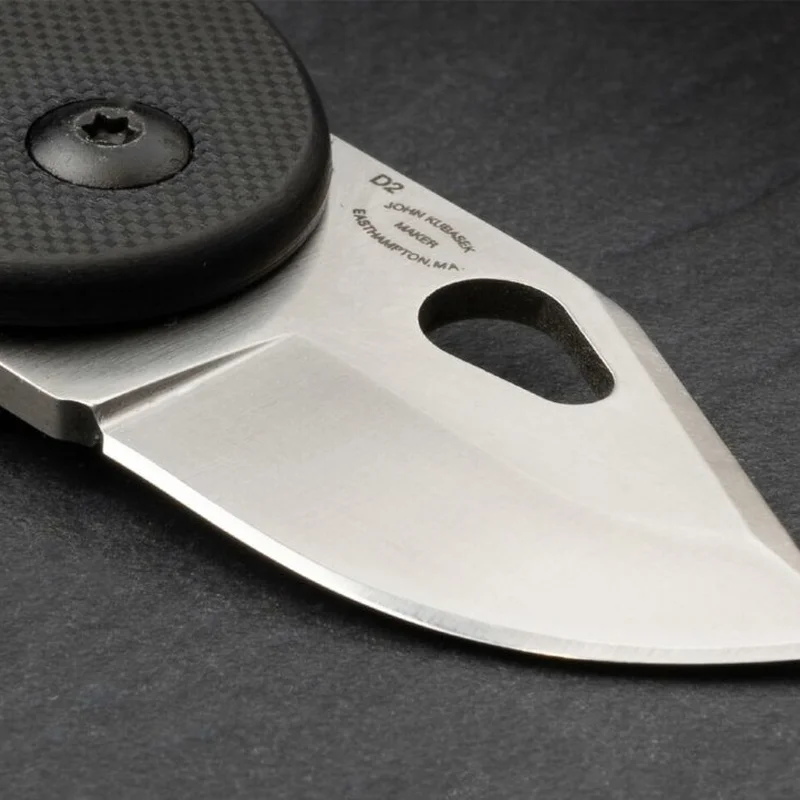 Компактний клинок типу clip point виготовлений з інструментальної сталі D2, здатної довгий час зберігати гостроту ріжучої кромки. Витягується клинок шляхом прокручування накладок рукояті один одного, і фіксується в робочому положенні магнітом.