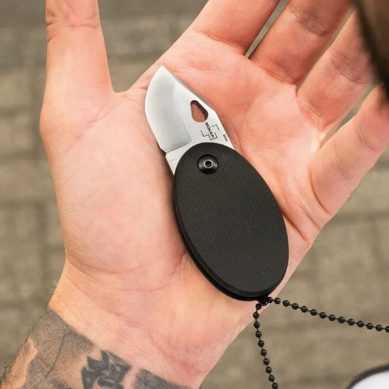 Ніж Boker Plus L Egg оснащений ланцюжком, за допомогою якої його можна носити на шиї.