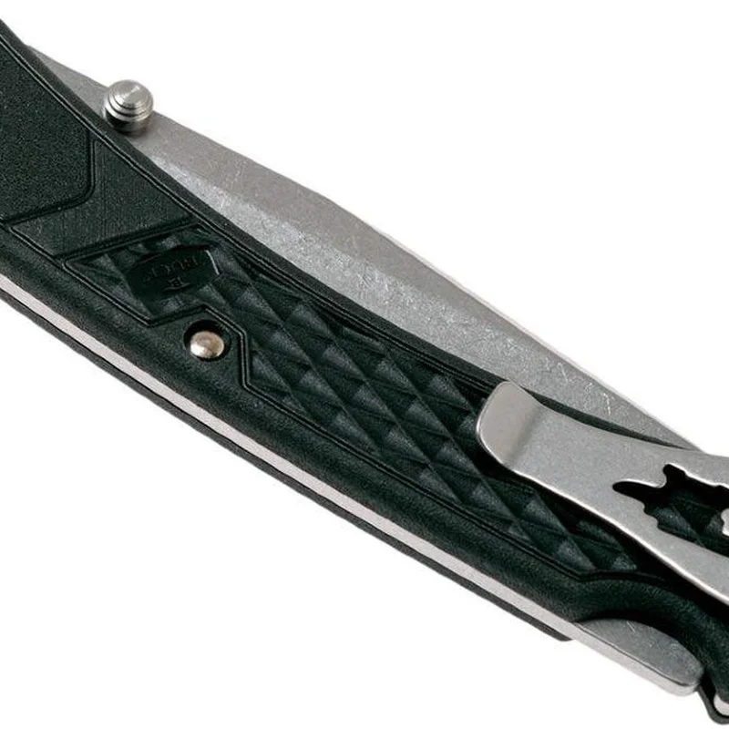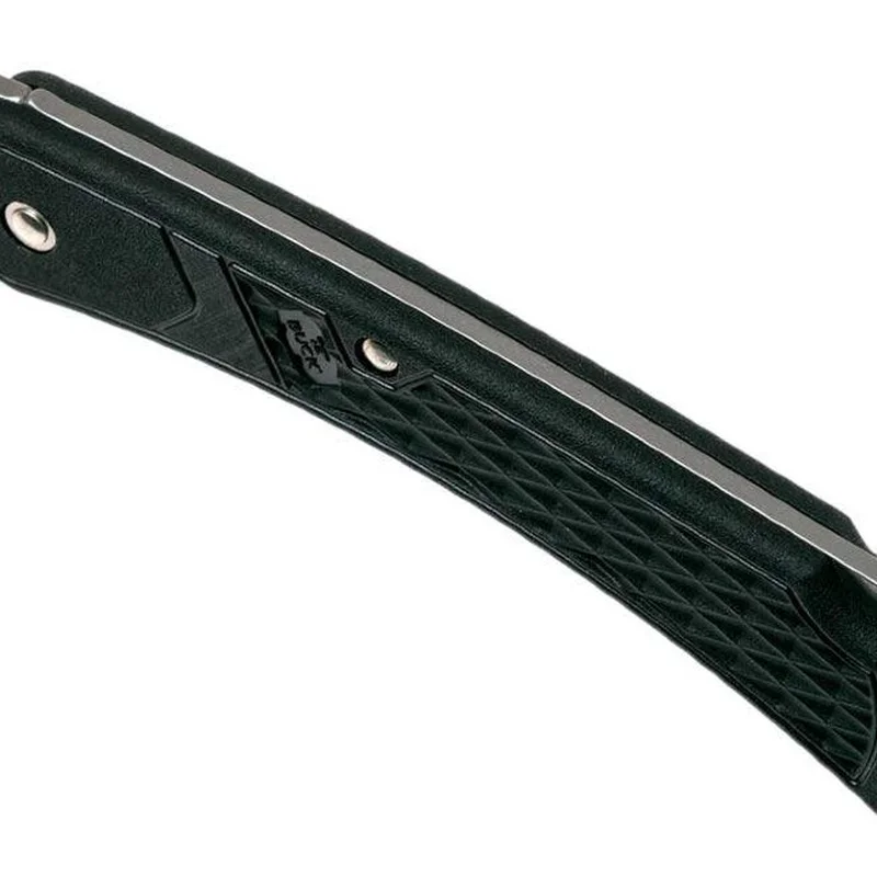 Легендарний Buck 110 можна з легкістю носити на кишені! Клнок виготовлений з все тієї ж фірмової сталі, що і повновагий побратим, а ось рукоять істотно втратила в обсязі, вазі і обзавелася дуже зручною двопозиційної кліпсою. Бонусом є можливість відкриття однією рукою (правоюлівою) за допомогою шпенька.