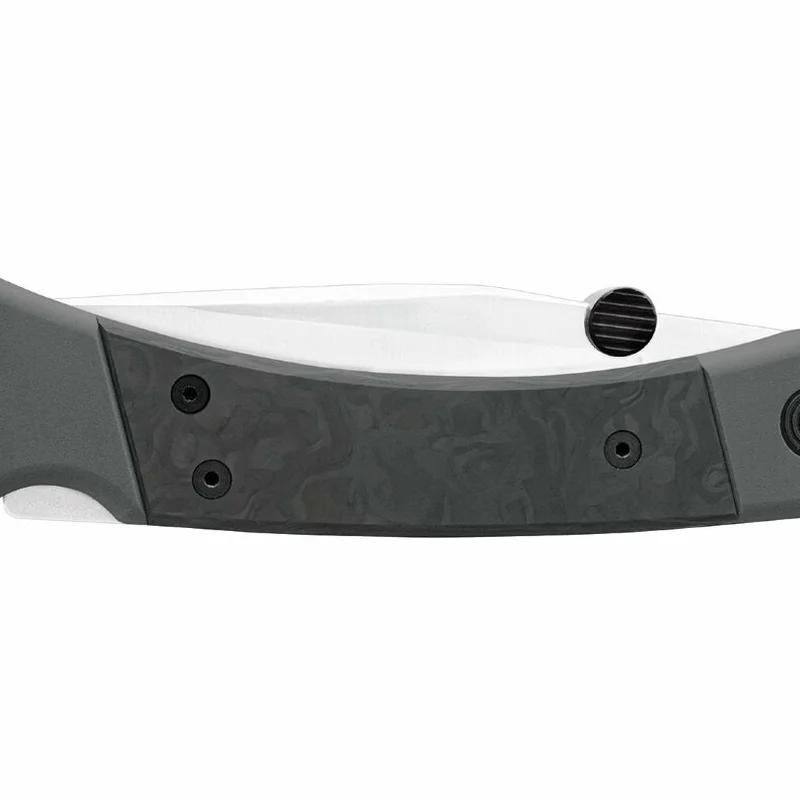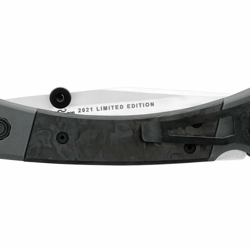 Виготовлений за індивідуальним замовленням бренду з високотехнологічних матеріалів, клинок зроблений з нержавіючої сталі Ѕ45ВН зі шпеньками для великого пальця з чорним покриттям Cerakote. Обкладки рукояті виготовлені з анодованого Алюміній сірого кольору, з'єднаного гвинтами зі вставками з вуглецевого волокна з візерунком під мармур. Для вашої зручності лімітований ніж Бук Legacy Follding Hunter CF 2021 Limited має кишенькову кліпсу, покриту чорним нітридом.