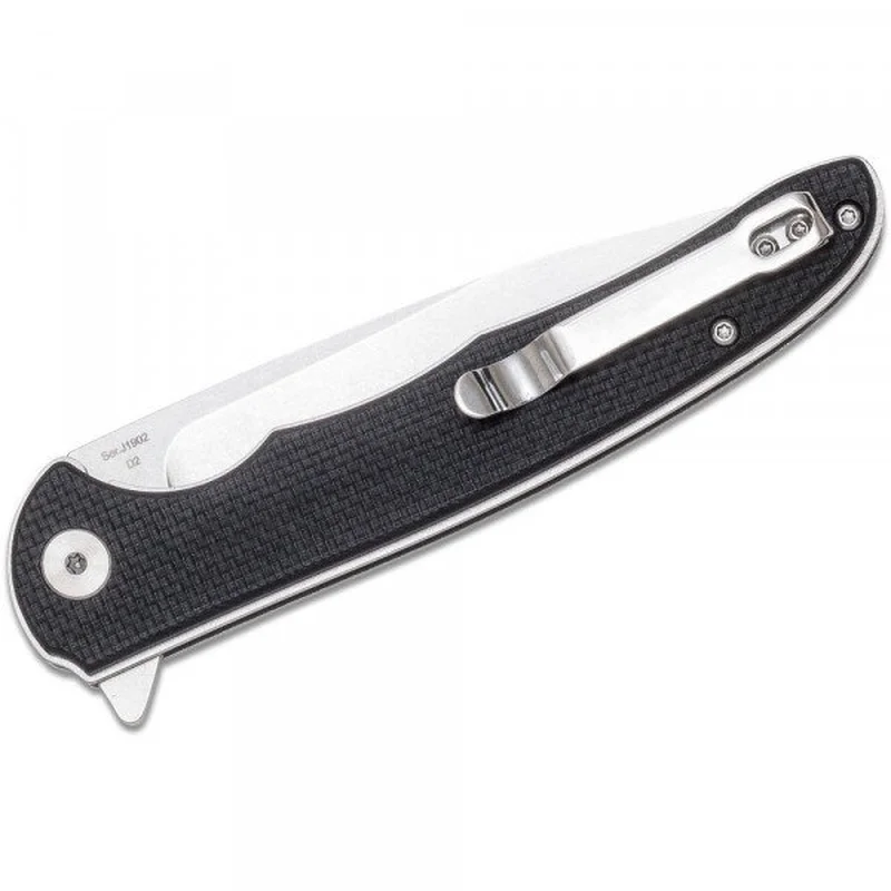 Лінії клинка плавно переходять в ергономічну ручку з накладками з склотекстоліти G-10 зі спеціальними дрібними насічками. Це дозволяє уникнути зісковзування ножа під час роботи навіть мокрими руками. Спеціальна подпальцевая виїмка забезпечує більш впевнений хват. Клинок приводиться в робоче положення за допомогою фліппера і фіксується замком Liner Lock.