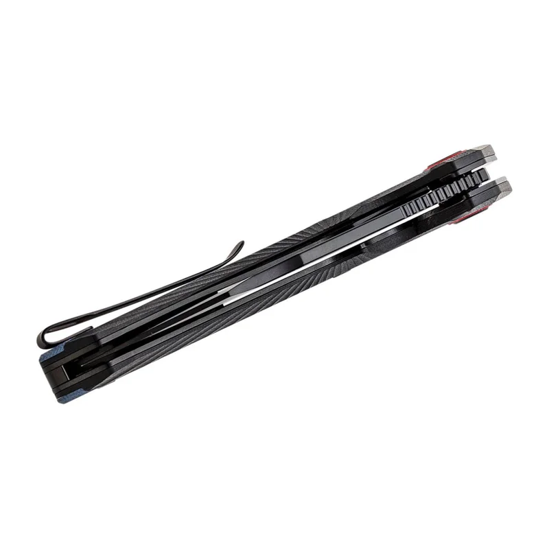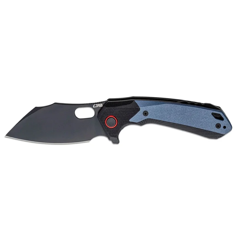 Складаний ніж Caldera від ножового бренду CJRB можна назвати міцною робочою конячкою для EDC і туризму. Широкий клинок профілю Cleaver виготовлений із фірмової порошкової сталі компанії - AR-RPM9 (Artisan-Rare Powdered Material 9 Element Steel). Ексклюзивна сталь має однорідну структуру, яка дозволяє зберігати гостру різальну кромку протягом тривалого періоду, проста в правці і відмінно витримує навантаження. На обух клинка нанесено низку дрібних насічок для упору великим пальцем. Чорне PVD (Physical Vapor Deposition) покриття захищає сталь клинка від вологи, агресивних хімічних речовин, корозії та подряпин. Плавне та м'яке відкриття ножа відбувається завдяки системі керамічних шарикопідшипників та зручного фліпера. Фіксація в робочому положенні відбувається завдяки надійному замку Liner Lock. Ергономічні накладки G10 комфортно лягають в руку, а дрібна структура гарантує надійний хват навіть вологими руками. Бекспейсер між пластинами замку додає надійності загальній конструкції. На торці ножа розміщений отвір для темляка, а кліпса дозволить із зручністю носити ніж у кишені та завжди тримати його під рукою.
