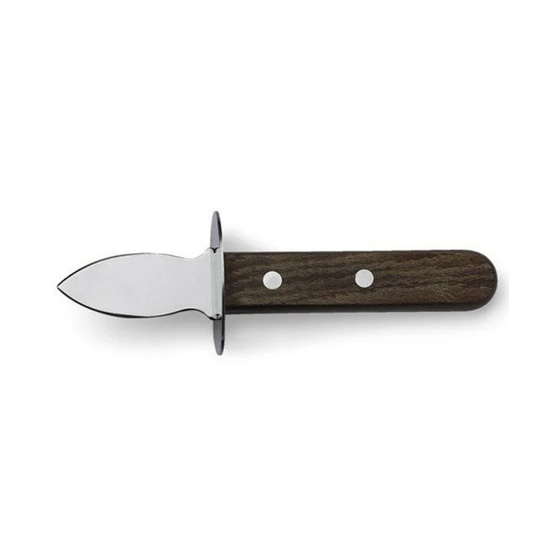 Для того щоб відкрити устрицю, потрібен спеціальний ніж, так як звичайний можна легко зламати. Ця модель має короткий симетричне лезо у формі краплі з гострим та міцним кінцем, заточене з двох сторін. Для захисту від поранень руки об раковину молюска на ручці є спеціальна гарда.