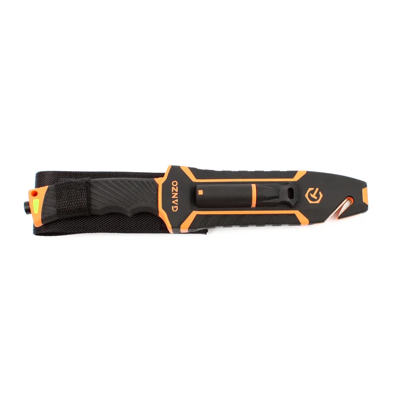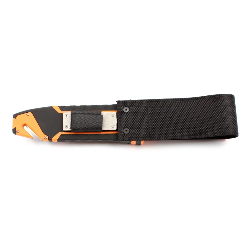Рукоятка відмінно пристосована для комфортної роботи. Вона зроблена з термопластика з великим запасом міцності, а поверхня матеріалу — прогумована, щоб ніж не вислизав з рук. Основний колір рукоятки — чорний, але окремі елементи зроблені яскраво оранжевими, щоб клинок був добре помітним на різних поверхнях. А щоб знайти його не склало труднощів навіть у темряві, на рукоятці є пара невеликих світлонакопичувальних елементів. В якості додаткового інструменту, на торці рукоятки є невеликий склобій.
