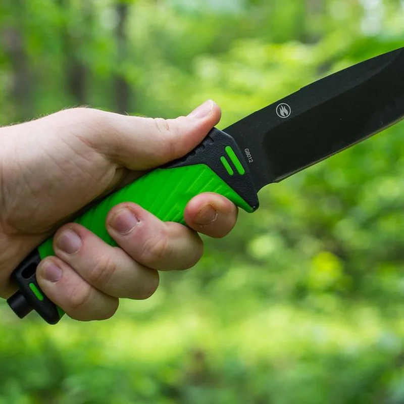 Модель Ganzo G8012 – це сучасний ніж для справжніх «вижівальників». Він передбачає всі ті моменти, які стають актуальними тоді, коли ми безпосередньо стикаємося з необхідністю використовувати ніж в екстремальній ситуації. Виготовлений Ganzo G8012 з нержавійки. Це сплав 7Cr17, відомий хорошим поєднанням стійкості до корозії і твердості загартування. Незважаючи на те, що сплав не іржавіє, це не такий вже і м'який метал. Загартувати його можна до 57 HRC. Так що, Ganzo G8012 добре заточується і лише періодично вимагає підгострювання.