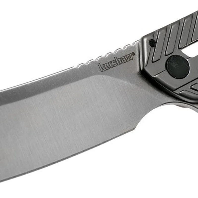 Особлива форма клинка Kershaw Static має на увазі, що в розрізанні він перевершує ножі з іншими клинковими профілями, однак при цьому функцію проколювання зберігає на належному рівні. Сталь 8Cr13MoV відноситься до сегменту якісніх і широко використовується в ножовий індустрії. Окремої згадки заслуговує дизайн сталевої рукоятки-чіткі лінії рифлення не тільки перешкоджають ковзанню долоні, але і виглядають вельми футуристично, в тому числі, завдяки покриттю PVD. Розкриття надзвичайно комфортне за рахунок використання підшипників в осьовому гвинті. Ніж досить універсальний: може бути використаний на кухні, при роботах на свіжому повітрі або вирішенні завдань, що виникають протягом дня.