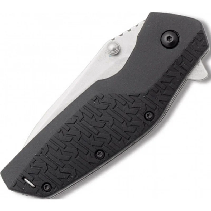 Ніж Kershaw Swerve створений для жорсткого щоденного використання. Міцний клинок з нержавіючої сталі 8Cr13MoVc увігнутими спусками і твердістю 58HRC, завдяки покриттю "стоунвош" володіє антибліковими властивостями і стійкістю до подряпин. Рукоять зі склотекстоліту G - 10 з оригінальною текстурою "K-Texture" має ергономічну форму, через що добре сидить в руці, не вислизаючи навіть у вологих умовах. В даному ножі використовується система швидкого відкриття SpeedSafe. Відкривається ніж двома способами-штовхнувши великим пальцем шпенек біля обуха клинка, або натиснувши на виступ "фліппер". У комплекті до ножа йде кліпса для кріплення на кишені або ремені.