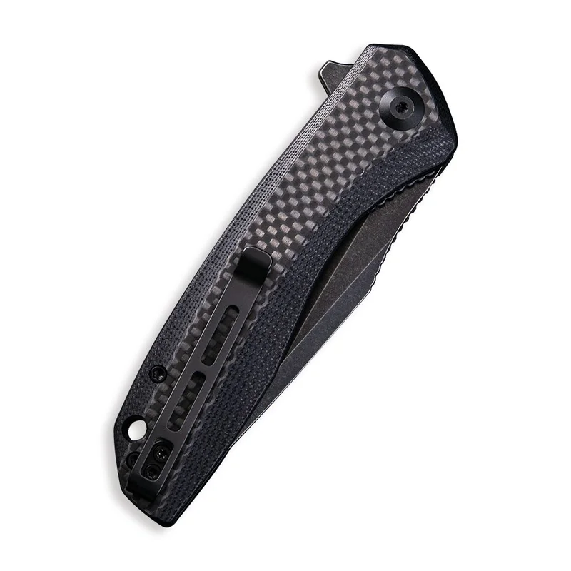 Основу ручки складають скелетонізовані лайнери, завдяки наявності отворів вдалося значно полегшити конструкцію ножа, при цьому зберегти необхідну міцність. Накладки на ручці виконані зі склотекстоліту G-10, який має текстуровані вставки з вуглецевого волокна, що гарантує надійне зчеплення з долонею.