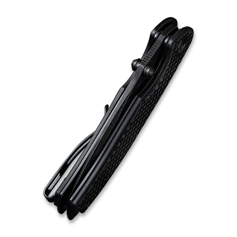 Матеріал руківʼя — склотекстоліт G10, поверх якого накладено карбонові плашки. Заокруглені краї накладок підвищують зручність утримання під час тривалої роботи з інструментом. У хвості присутній наскрізний отвір для темляка, поруч розташована сталева кліпса, що є двопозиційною.