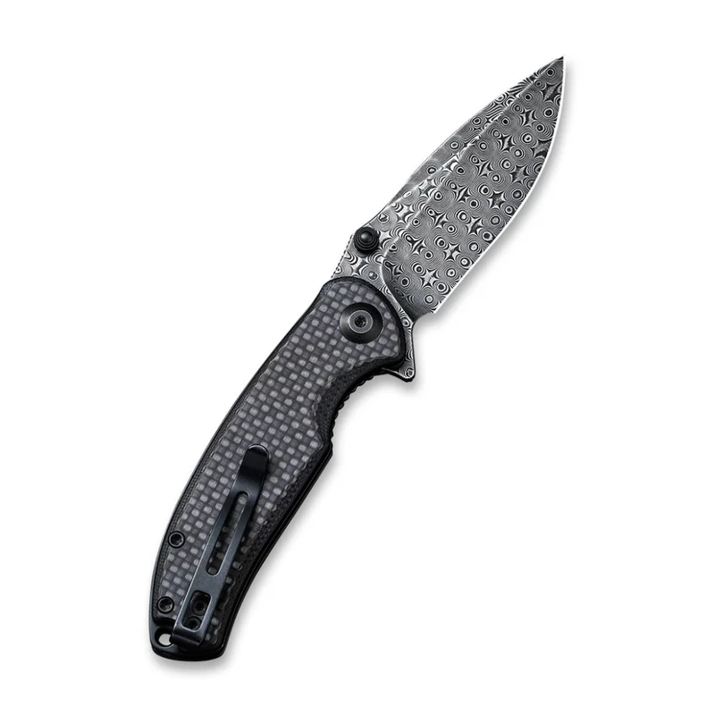 Довжина клинка сягає 75.8 мм. Його форма drop point характеризується універсальністю та зручністю як у завданнях, що потребують точного різання, так і у виконанні точкових проколів. Товщина клинка в обуху становить 2.6 мм. Користувачу доступні кілька варіантів відкривання ножа: за допомогою плавця або двостороннього шпеника, також виготовленого зі сталі з чорним покриттям.