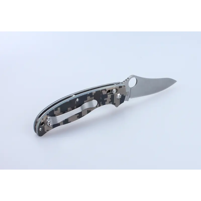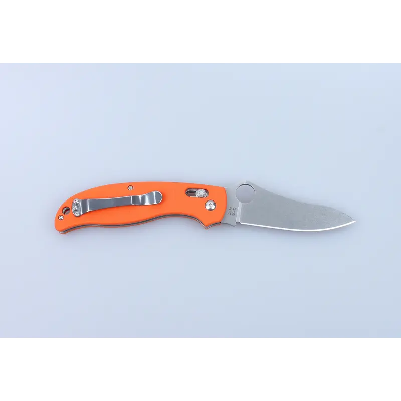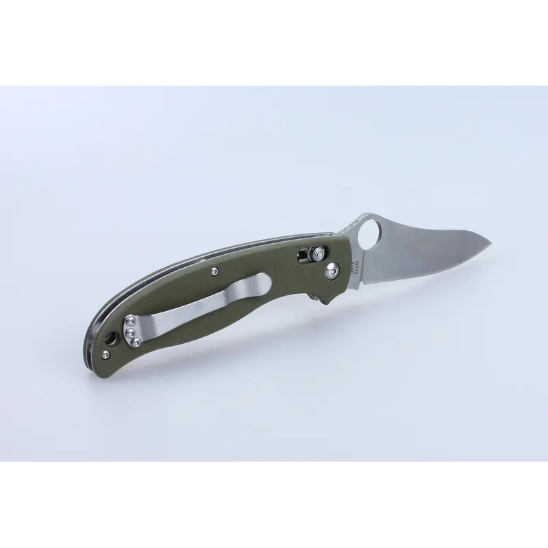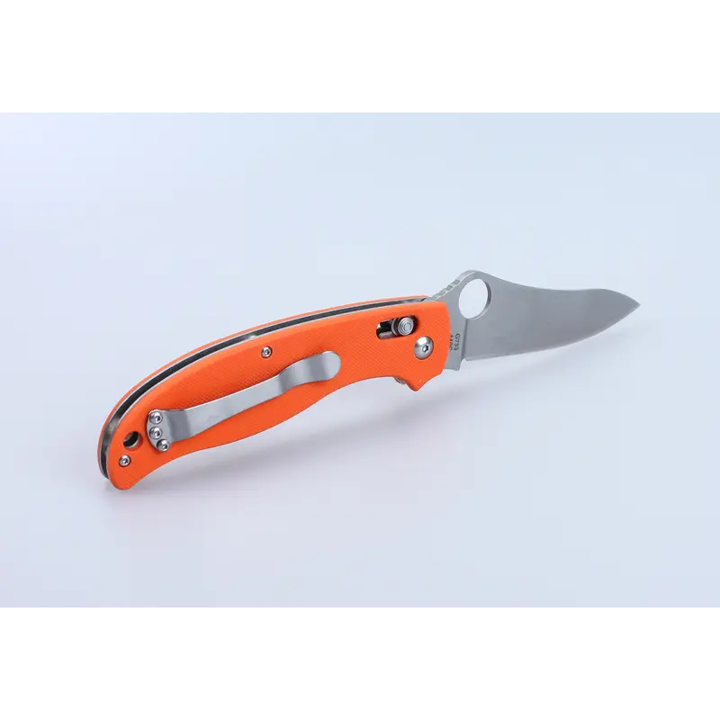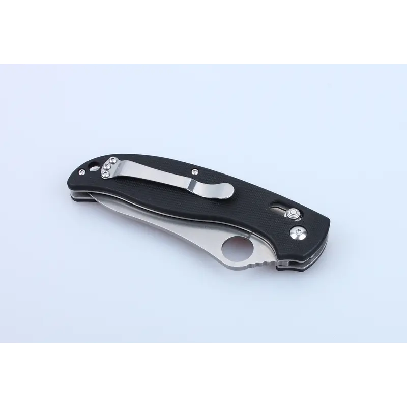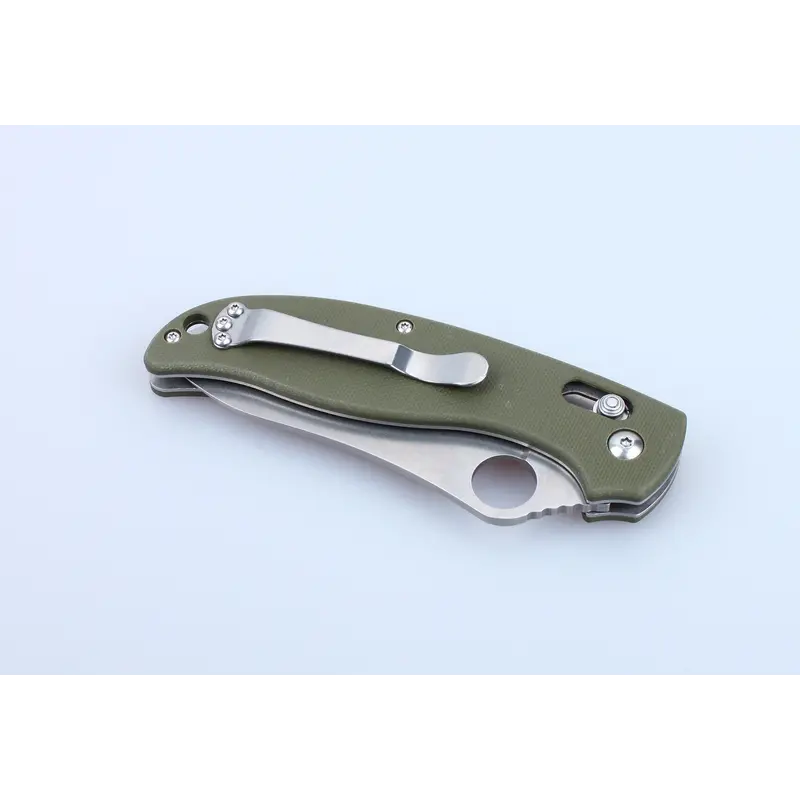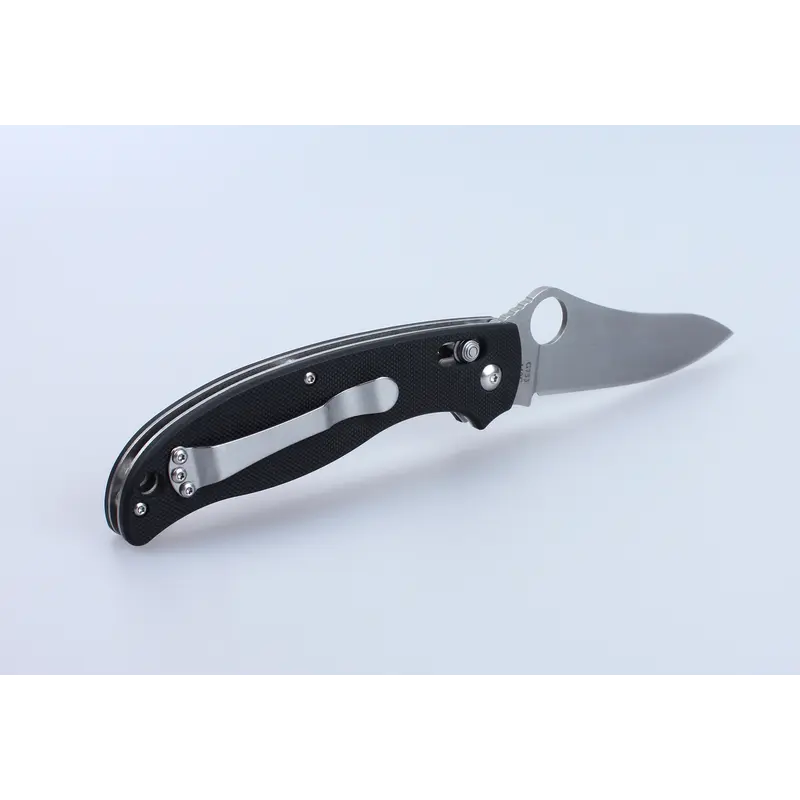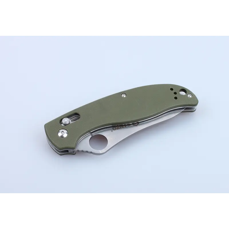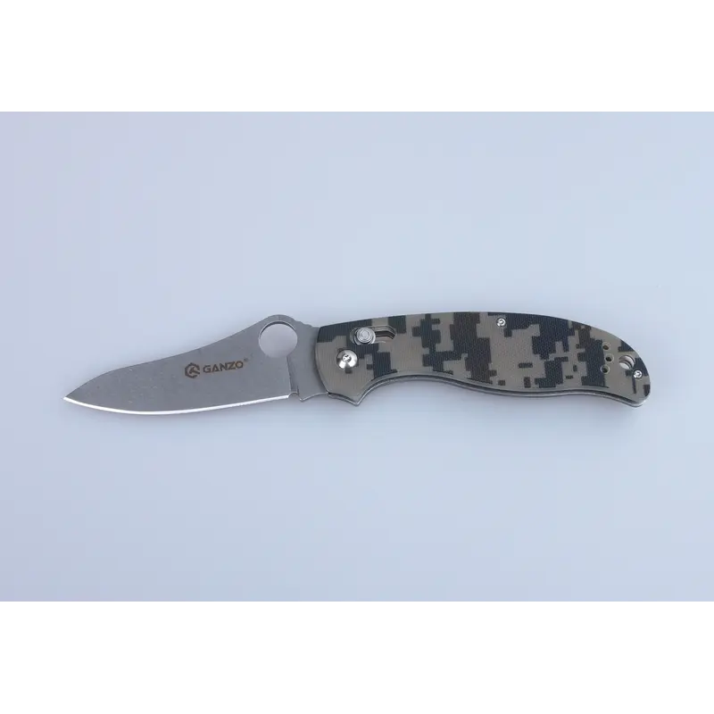 Ganzo G733 — складаний ніж, націлений на використання в туризмі. Він виконаний з нержавіючої сталі і тому йому не страшний контакт з водою. Хоча елементарний догляд у вигляді періодичного протирання клинка, ножу все ж потрібно. Лезо займає 9,1 см від загальної довжини ножа, складовою 21 див. Обух даної моделі дорівнює по ширині 3,3 мм. Геометрія клинка відповідає формі drop point, хоча вона і представлена в зміненому вигляді. На значно ширшій частині клинка з боку рукоятки зроблено отвір. Коли клинок закритий, воно використовується замість традиційного шпенька. Сталь 440С, з якої зроблений ніж, загартована до 58HRC. Заточити її не складно, але заточення буде триматися довго. До речі, лезо ножа — гладке, що робить його універсальним інструментом для вирішення будь-яких похідних завдань, які тільки можна доручити ножу.