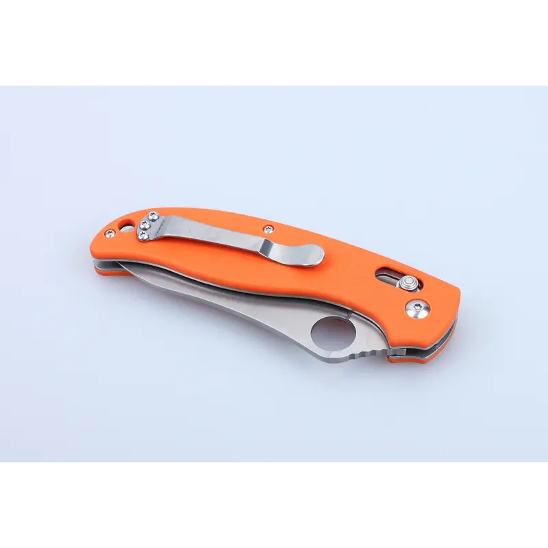І третя з найбільш суттєвих деталей ножа — його руків'я. У випадку з Ganzo G733, вона зроблена з пластику, до складу якого входить епоксидка і скловолокно. Отриманий полімер — дуже міцний і відрізняється тривалим періодом служби. Його легко пофарбувати у будь який колір. А для Ganzo G733 виробники зупинилися на чотирьох варіантах, які найбільш популярні: чорний, яскраво-оранжевий, зелений камуфляжний. Кожна рукоятка має невелике по діаметру отвір для протягування темляка і сталеву кліпсу для підвішування ножа до поясного ременя. Крім іншого, G10 — легкий матеріал. А тому ніж Ganzo G733 важить лише 125 р.