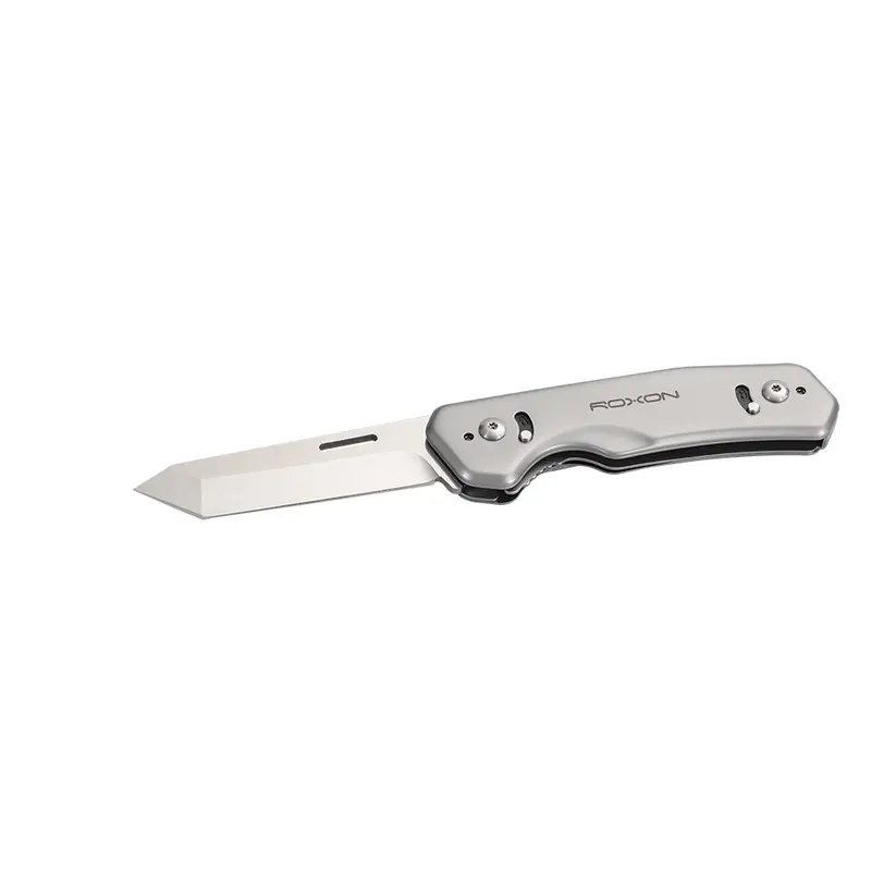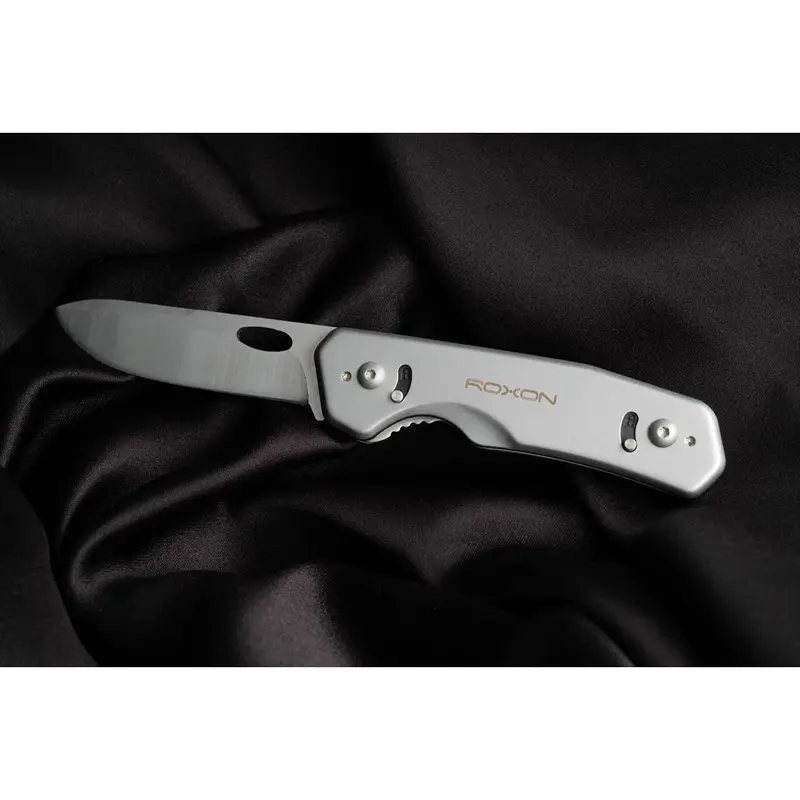 Модель Roxon Phantasy S502 являє собою складаний ніж для застосування в туризмі і в активному відпочинку. Ніж зручно і компактно складається. Прекрасний зовнішній вигляд, гладке поліроване лезо. Є металева кліпса для закріплення ножа і перенесення, можна зафіксувати на кишені, на сумці або на поясі. Потрібний інструмент завжди у вас під рукою. Форма леза ножа – Drop-point, воно може взаємозамінюватися з лезом моделі S802. Є також змінні леза до ножа, щоб можна було виконувати різні операції. Їх треба купувати окремо.