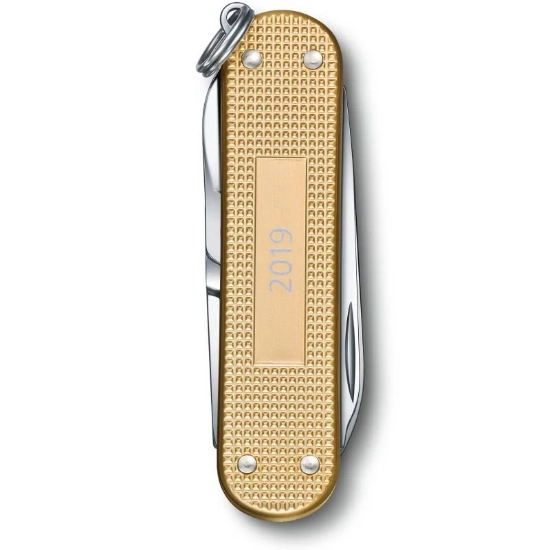 Маленький складаний ніж-брелок CLASSIC ALOX 58мм/2 шари/5 функцій/золотисті рифлені накладки з алюмінію (Lim.Ed. 2019)